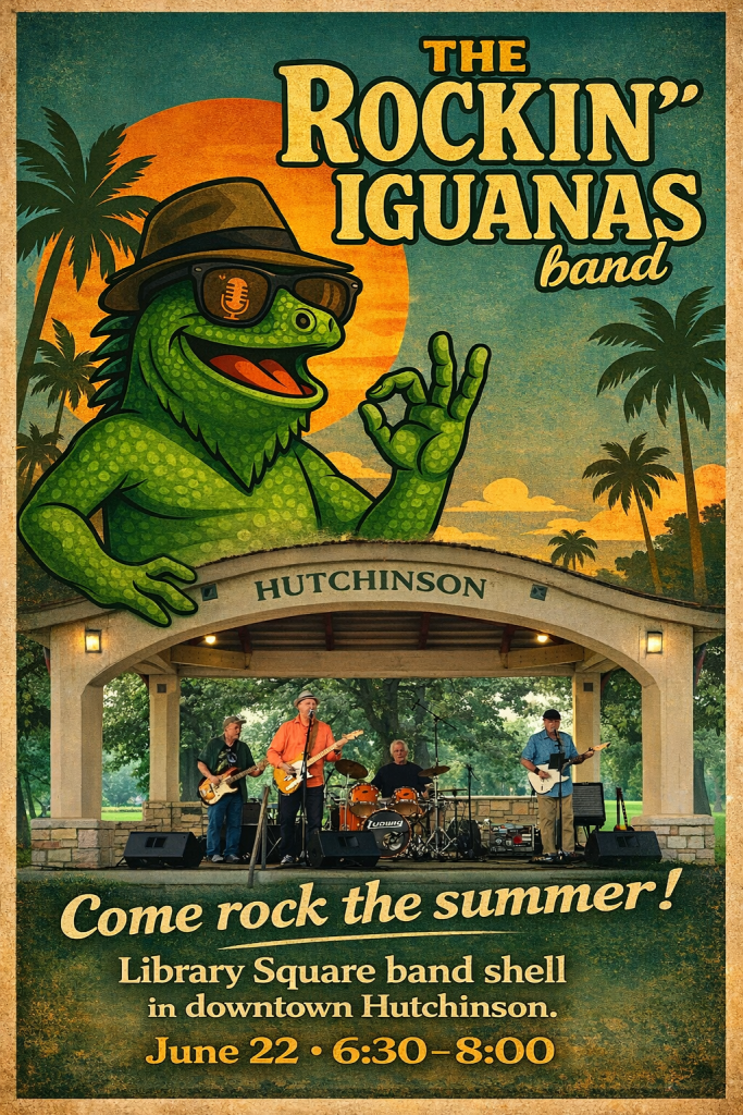 June 22. 6:30 – 8pm – Hutchinson Square Band Shell, Hutchinson, MN – Music at the Bandshell. Take a short drive on June 22 to Hutchinson Minnesota for another outdoor show!