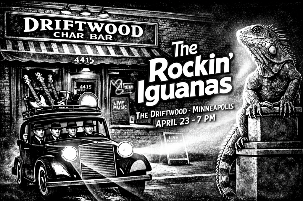 The Rockin’ Iguanas are playing the Music in the Park again this summer. August 1, 2025 at 7 pm at Minnehaha Park! Write it down. We will see ya there. The park shows are some of our faves!